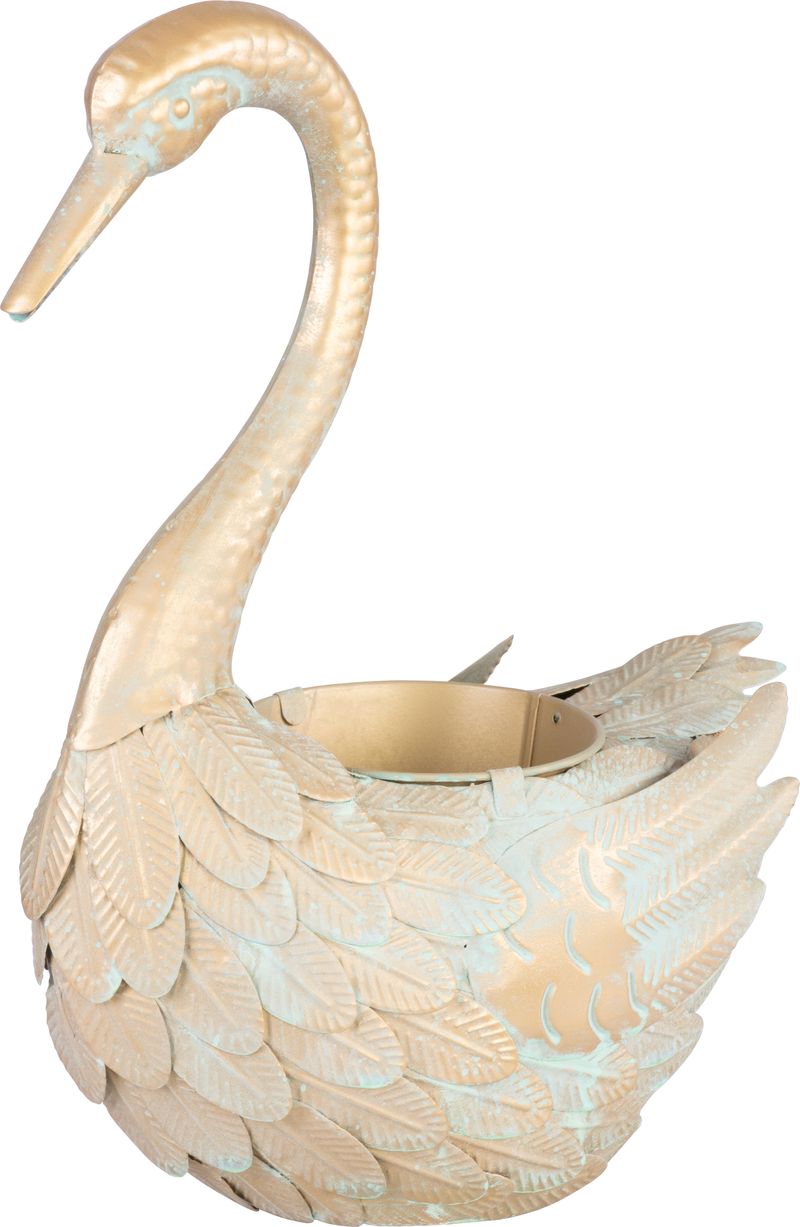 Dekorácia MagicHome Mecco, Hus, plech kvetináč, zlatá, 35x18x43 cm