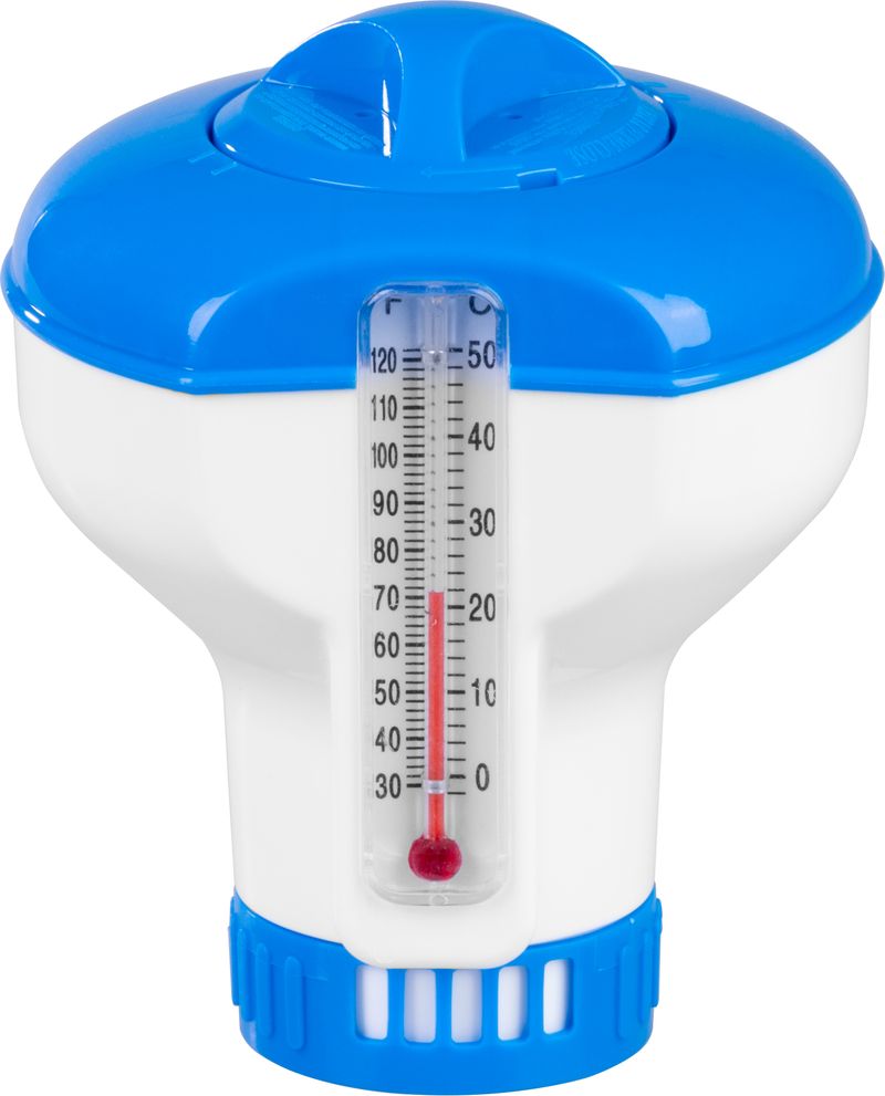 DávkovačStrend Pro Pools teplomerom je praktický a spoľahlivý pomocník naudržiavanie čisteja hygienickej vody vo vašom bazéne. Je určený na postupné uvoľňovanie chlórových alebo multifunkčných tabliet s priemerom 1,5".Zabudovaný teplomerumožňujejednoduché sledovanieteploty vody v stupňoch Celzia aj Fahrenheita. Plávajúci dizajn zabezpečujerovnomerné rozloženie chemikáliív bazéne, čím sa predchádza tvorbe rias a baktérií. Vyrobený zkvalitného a odolného plastu, ktorý odoláva bazénovej chémii a UV žiareniu. Ideálne riešenie na efektívnu údržbu bazéna.
