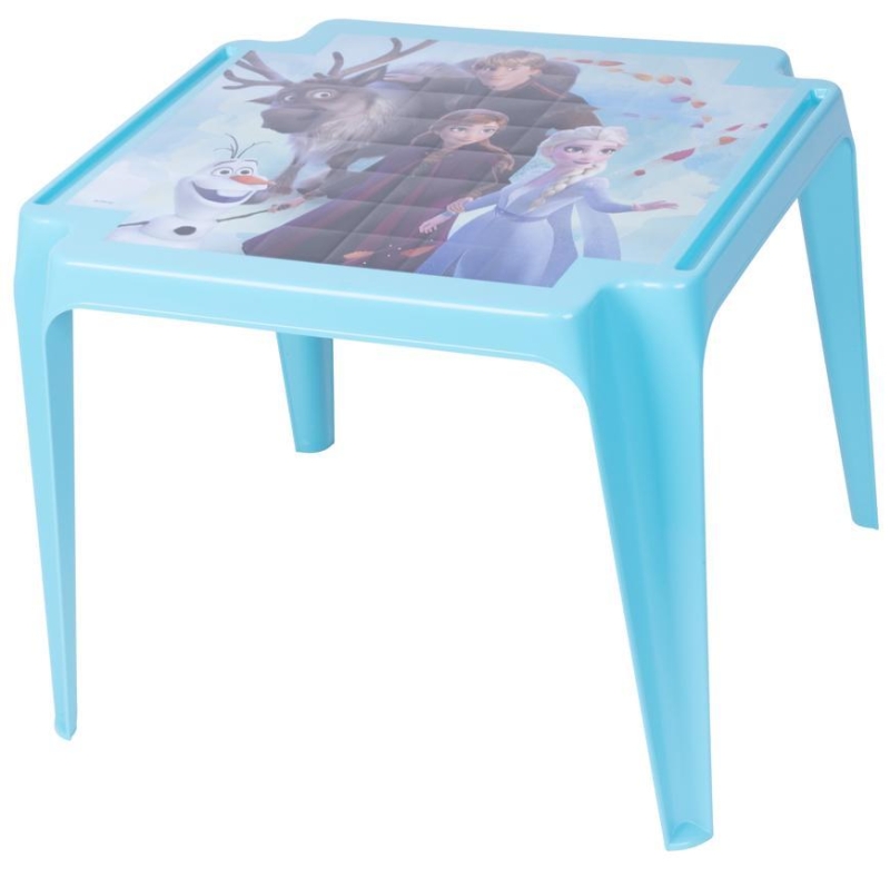 Kvalitný detský plastový stôl TAVOLO BABY Disney Frozen je určený na záhradu aj do detskej izby. Je vyrobený z kvalitného plastu, jeho rozmery sú : 55x50x44 cm. Farba : modrá a na povrchu užívateľskej plochy s motívom Disney Frozen. Mix obrázkov - nie je možné vyskladniť určitý stôl s obrázkom.