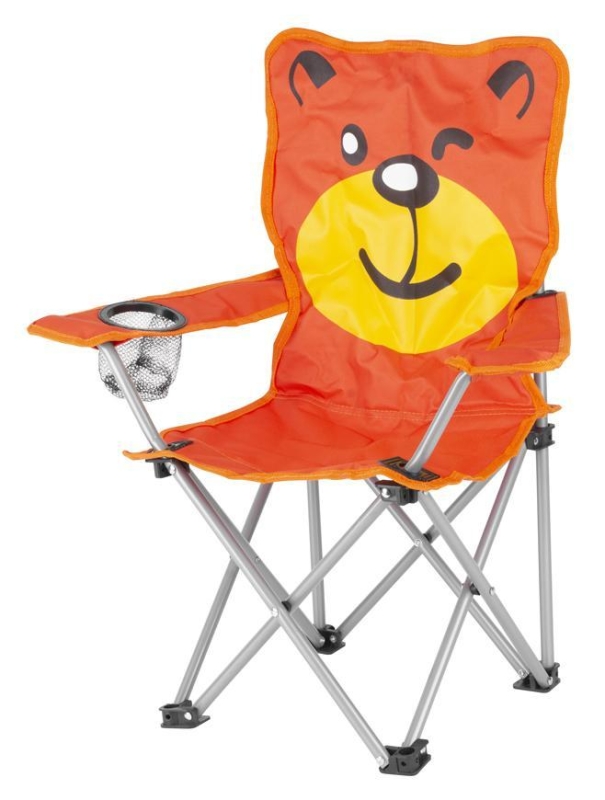 Detská stolička je malá, praktická, prenosná pomôcka. Vďaka stoličke môžete deti usadiť kdekoľvek, čím predídete napríklad sedeniu na zemi v prírode. Stolička je oranžovej farby, s motívom medveďa v časti chrbta. V opierke na lakeť je miesto určené pre umiestnenie nápoja. Konštrukcia je vyrobená z kovu s priemerom 13 x 0,7 mm, čím poskytuje pevnosť a nosnosť 60 kg. Rozmery sú 35 x 35 x 55 cm.