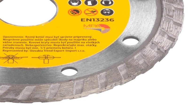 Diamantový kotúč Strend Pro je vhodný pre domácich kutilov, ale aj pre profesionálnych remeselníkov. Je vhodný pre mokré aj suché opracovávanie. Technológia TURBO+ je schopná zachytávať vzduch v pohybe, čím sa lepšie odvádza materiál a tým sú zaručené čistejšie rezné hrany bez odlamovania materiálu, ďalej rýchlejšie rezy, optimálna životnosť a redukcia zahrievania. Jeho využitie je rozsiahle - kameň, keramika, strešná krytina, tvárnice, stavebný materiál, betón, tehly, tvárnice a kameninové rúry. Jeho priemer je 115 mm a maximálne povolené otáčky sú 13200 rpm.