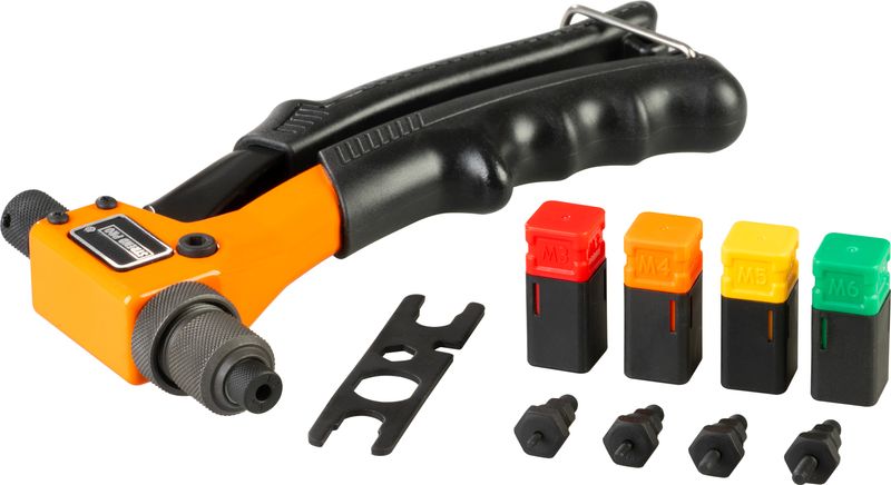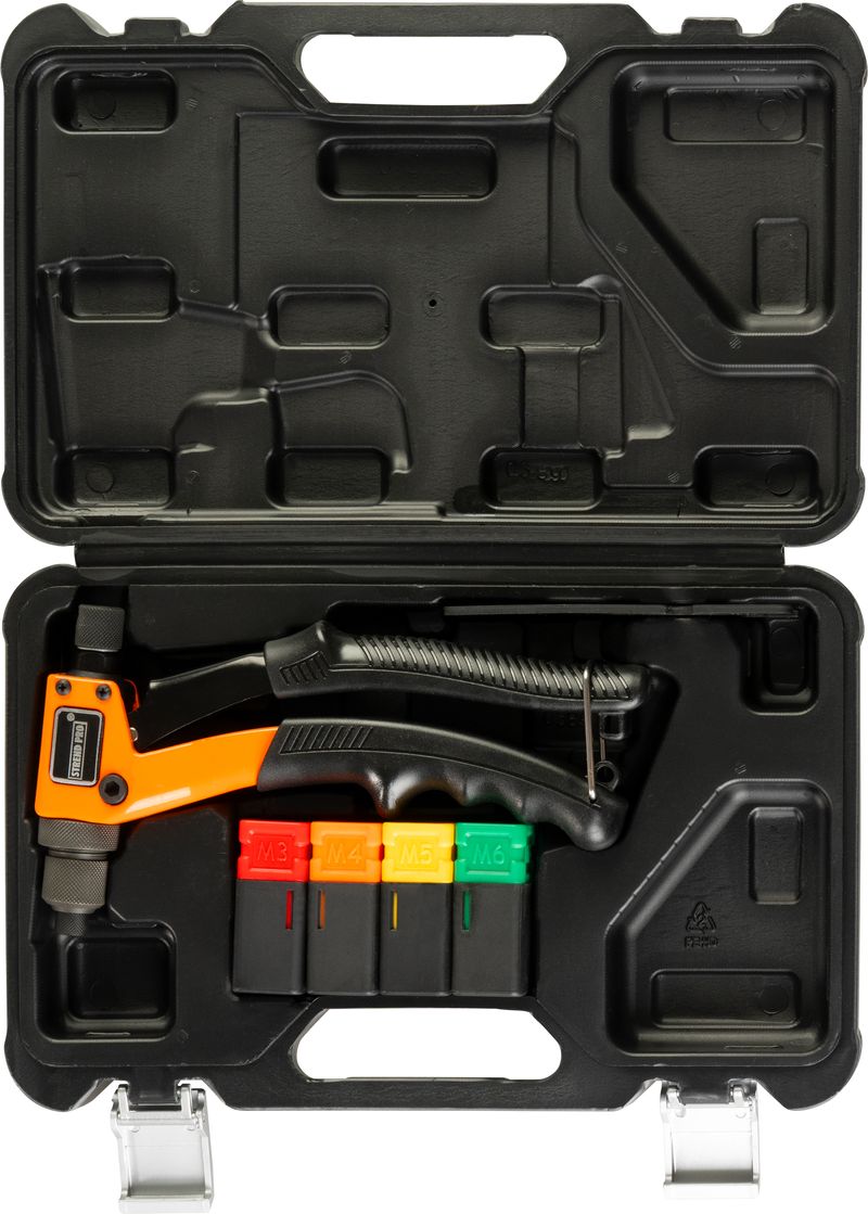 Nitovacie kliešte sú určené na spájanie materiálov pomocou nitovacích matíc. Použitie nitov: hliník, oceľ a nerez. Kliešte sú uložené v praktickom kufríku spolu so 4x nitovacími koncovkami M3, M4, M5 a M6. Dĺžka: 200 mm.