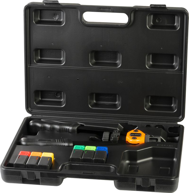 Nitovacie kliešte sú určené na spájanie materiálov pomocou nitovacích matíc. Použitie nitov: hliník, oceľ a nerez. Kliešte sú uložené v praktickom kufríku spolu so 6x nitovacími koncovkami M3, M4, M5 M6, M8 a M10. Dĺžka: 330 mm.