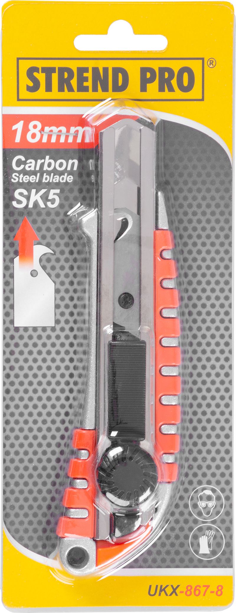 Nôž Strend Pro UKX-867-8, 18 mm, odlamovací, s kolieskom, čepeľ háčik, Alu/plast