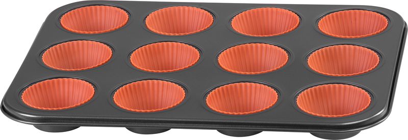 Forma MagicHome, na pečenie, na 12 muffinov, plech, so silikónovými formami, 35x26,5x3 cm