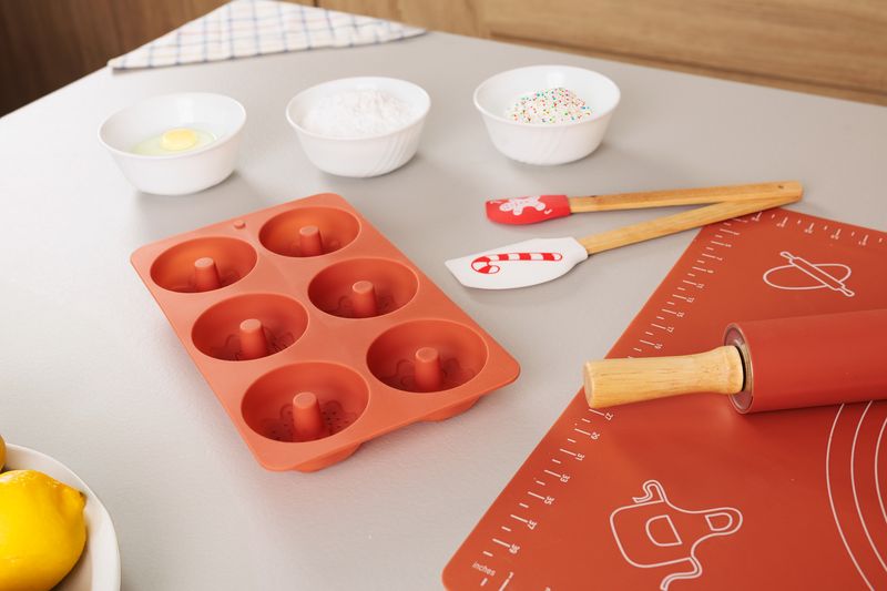 Táto praktickásilikónová formavám umožní pripraviť až6 donutovnaraz. Je ideálna na pečenie vo všetkých typoch rúr – mikrovlnnej, elektrickej, teplovzdušnej aj plynovej. Okrem toho ju môžete použiť aj na mrazenie v mrazničke, čo rozširuje jej možnosti využitia. Forma je vyrobená z kvalitného silikónu a jeBPA Free, čo zaručuje, že je zdravotne nezávadná. Vďakanepriľnavým vlastnostiamnie je potrebné ju takmer vôbec vymazávať ani vysýpať. Forma je tepelne odolná až do260°Ca po použití ju môžete bez problémov umyť v umývačke riadu.