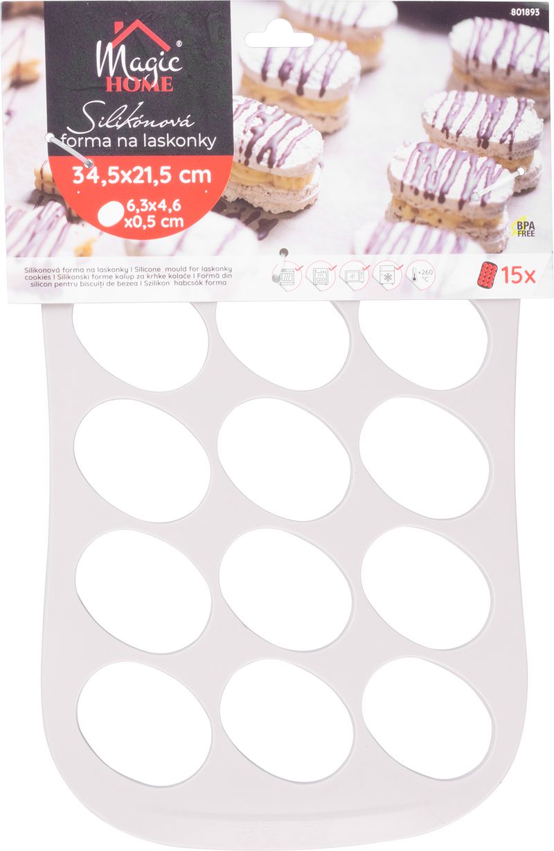 Napečte svojim blízkym chutné laskonky, s formou na pečenie MagicHome sa Vám to zaručene vydarí! Naraz upečiete až 15 laskoniek. Nepriľnavý povrch napomáha proti prilepeniu cesta. Materiál: silikón. Vhodná na použitie v elektrickej, plynovej a teplovzdušnej rúre na pečenie do 260 °C. Vhodná do umývačky riadu. Rozmery: 34,5x21,5 cm. Rozmer laskonky: 6,3x4,6x0,5 cm.