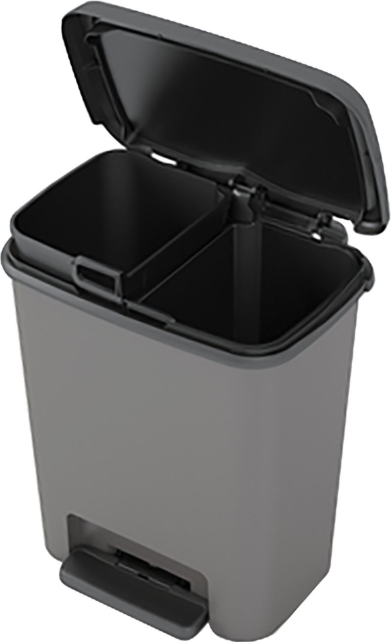Recyklačný odpadkový kôš Compatta šedý na vrecia na odpad 11+11 litrov. Viacúčelové použitie doma alebo v kancelárii. K jeho obľúbenosti prispievajú protišmykové nožičky a jednoduché čistenie vnútorných nádob. Vnútorné nádoby majú rukoväte na jednoduchú manipuláciu.
