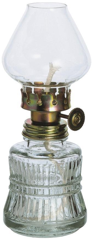 Petrolejová lampa so skleneným cylindrom. Cylinder zaisťuje optimálne horenie a stabilitu plameňa. Lampa je určená ako primárny zdroj svetla a je často