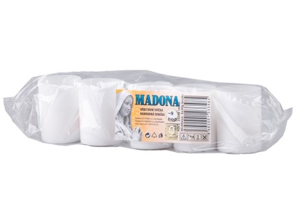 Biele sviečky Madona vhodné na výzdobu hrobov. Horenie až 9 hodín. Balenie obsahuje 5 ks.