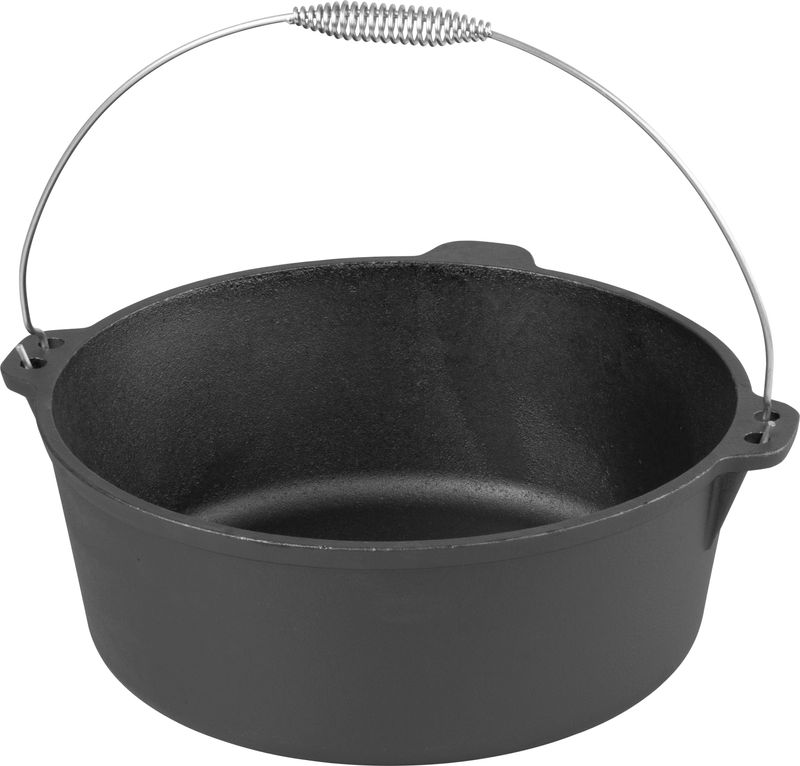 Kvalitný celoliatinový kotlík s olejovou úpravou MagicHome je ideálny na prípravu guľášu pri príležitosti osláv, zabíjačiek a iných príležitostí. Kotlík má objem 10,1 lit. a priemer 34 cm. Súčasťou tohto kotlíka je aj nerezová rukoväť. Výhody liatinového riadu sú neprilnavosť, perfektná tepelná vodivosť, udržiavanie tepla a vysoká odolnosť. Kotlík je ekologický pretože, neobsahuje PFOA, PFOS, VOC, olovo ani kadmium. Vhodný pre použitie na otvorenom ohni alebo indukčom, elektrickom, plynovom, halogénovom a sklokeramickom sporáku.
