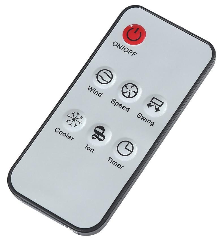 Na ovládacom dotykovom paneli sa nachádza 6 tlačidiel na manuálne ovládanie ochladzovača. Tlačidlo ION - funkcia ionizácie, SWING slúži na zapnutie funkcie fúkania, COOL zabezpečuje funkciu chladenia a zvlhčovania, TIMER - nastavenie časovača, WIND - nastavenie typu prúdenia vzduchu, SPEED – nastavenie úrovne prúdenia vzduchu, ON/OFF - vypnutie. Ochladzovanie vzduchu funguje na princípe odparovania studenej vody, ktorá odoberá teplo z nasávaného vzduchu a súčasne je tento vzduch zvlhčovaný vznikajúcou vodnou parou. Uistite sa, že v nádržke na vodu sa nachádza dostatok vody, predtým, než zapnete funkciu chladenia. Objem nádobky na vodu je 12 litrov, pričom spotreba vody predstavuje 0,5 l/h. Funkcia čistenia vzduchu nasáva vzduch, ktorý prechádza do ochladzovača cez vzduchový filter a ten ho čistí od prachu a iných nečistôt.