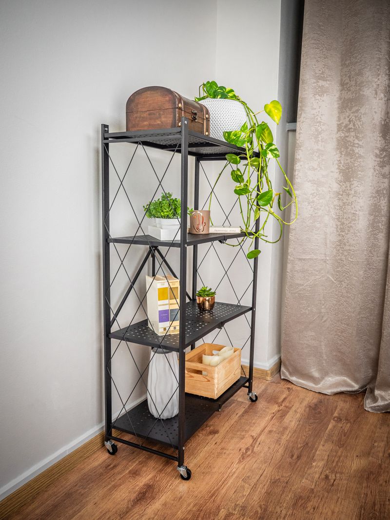 4-policový skladací a pojazdný regál MagicHome je praktický pomocník v domácnosti všade tam, kde potrebujete niečo uskladniť. Regál je celý