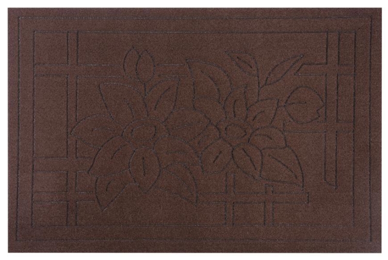Rohožka MagicHome na čistenie obuvi pri vchodových dverách. Má jemne drsný povrch, vďaka čomu dokáže očistiť obuv bez väčšej námahy. Pekný motív s kvetom v hnedej farbe. Použitie: exteriér. Rozmery: 40x60 cm.