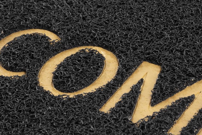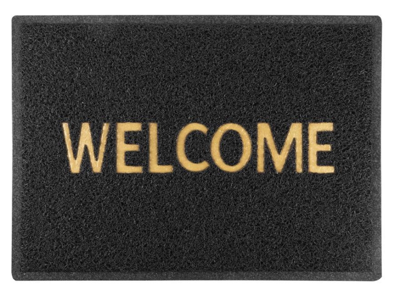 Rohožka MagicHome na čistenie obuvi pri vchodových dverách. Má drsný povrch, vďaka čomu dokáže očistiť obuv bez väčšej námahy. S hnedým nápisom Welcome v