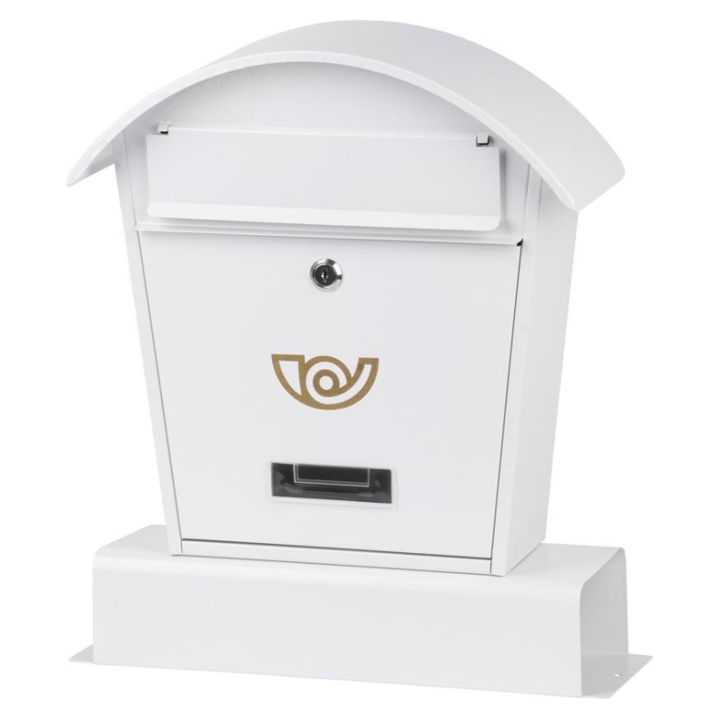 Elegantná poštová schránka v bielej farbe. Obsahuje časť na letáky. Rozmery: 40x14x49 cm. Materiál: kov.