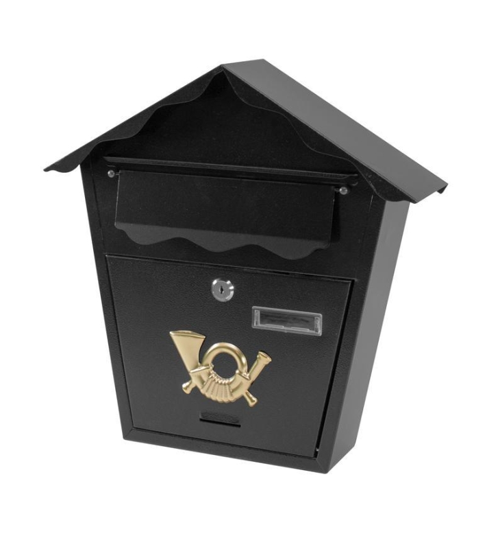 Elegantná poštová schránka čiernej farby. Rozmery: 36x10x36 cm. Materiál: kov.