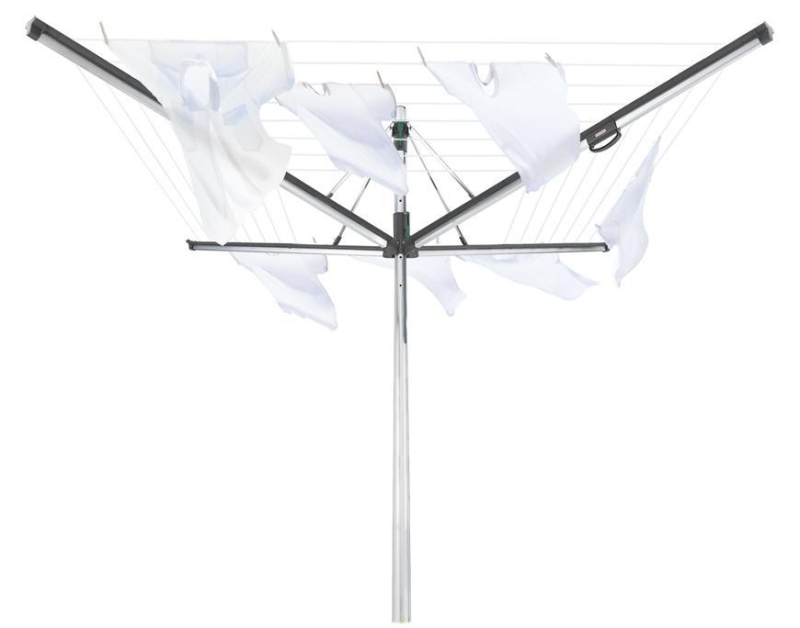Linomatic 500 plus v elegantnej antracitovej farbe ponúka mnoho praktických doplnkov. Rukoväť pripevnená k montážnemu ramenu umožňuje pohodlné otváranie a zatváranie stojana. Výška ramien môže byť individuálne nastavená v 10 úrovniach od 1,06 do 1,72 metrov. Vďaka špeciálnemu systému Leifheit automatického zaťahovania šnúry sú línie chránené pred nečistotami vo vnútri nosných ramien. Čisté línie, čistá bielizeň. Linomatic 500 plus ponúka 50 metrov dĺžky šnúr. Zahŕňa 8 háčikov na rotačných ramenách na zavesenie ramienok s odevmi. Všetky použité materiály sú odolné voči poveternostným vplyvom a UV žiareniu. Zahŕňa uzemňovaciu zásuvku s krytom na zaistenie sušiaku do betónu.