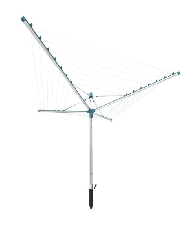 Vonkajší otočný sušiak, odolný voči vplyvom počasia, nehrdzavejúci hliníkový rám, patentovaný systém zaťahovania šnúr do bočníc. Šnúry sú chránené pred dažďom a špinou, mechanizmus pre ideálne vypnutie šnúr, možnosť zavesenia ramienok na konce ramien sušiaku. 50 m šnúr = 5 práčok bielizne. Súčasťou balenia je držiak na zabetónovanie.