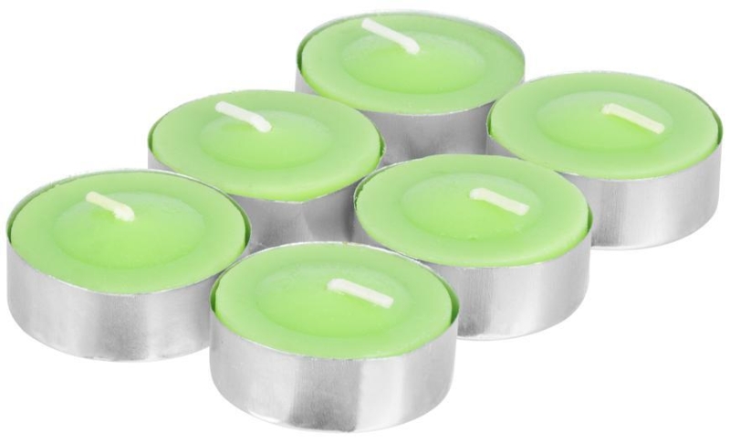 Klasická čajová sviečka bez vôňe do svietnika či lampášu. Farba: zelená. Balenie obsahuje 6 ks sviečok.