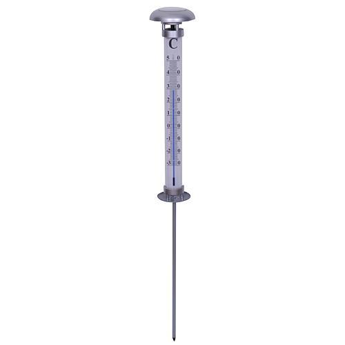 Veľký solárny záhradný teplomer s pevným hrotom na zapichnutie do zeme s LED osvetlením. Pôsobivý a ľahko viditeľný v noci. Rozmery: 62x9 cm.