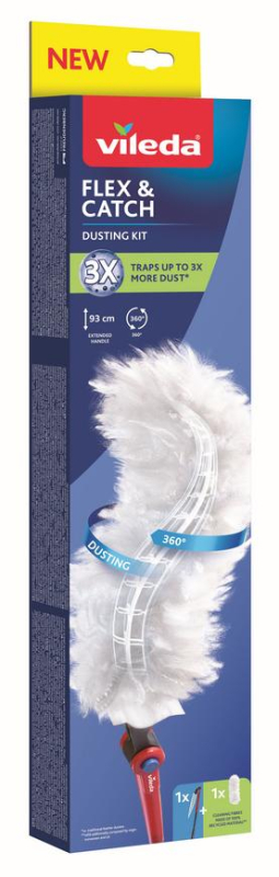 Prachovka Vileda Flex&Catch s dlhou rukoväťou je praktický pomocník na jednoduché odstraňovanie prachu aj na vyšších a ťažko dostupných miestach v domácnosti. Vďaka flexibilnej hlavici sa prispôsobí rôznym povrchom a umožňuje efektívne čistenie aj tam, kam sa bežné prachovky nedostanú.