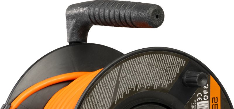 Kvalitný predlžovací kábel Strend Pro DG-FB04 v oranžovom prevedení namotaný na bubne je dlhý 25 metrov. Efektívne rozšíri