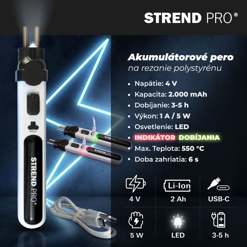 Pero Strend Pro, rezač na polystyrén, 2000mAh, USB nabíjanie, s príslušenstvom