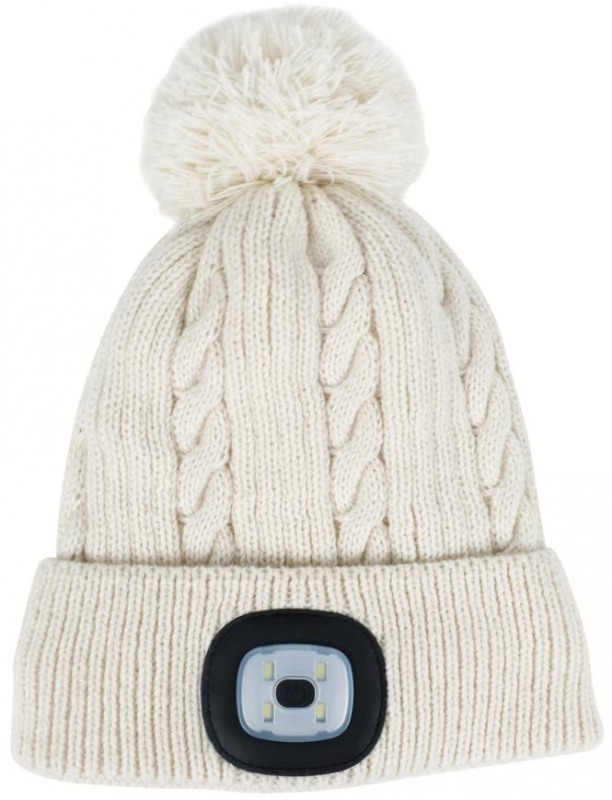 Buďte štýlový s pohodlnou a teplou čiapkou Strend Pro! Čiapka v bielej farbe s brmbolcom má elegantný dizajn, takže sa hodí ku všetkému. Veľkosť L. Nabíjanie LED svetla pomocou USB portu. 3 stupne intenzity svietenia. Možnosť prania.