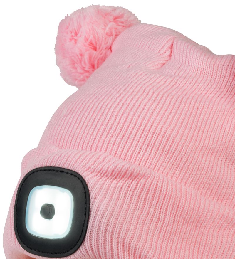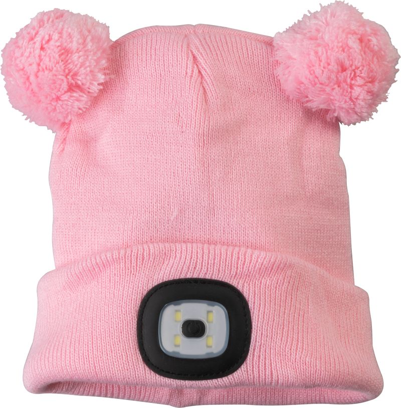 Čiapka Strend Pro kid ružová M, s brmbolcami, 4x SMD LED, USB nabíjanie