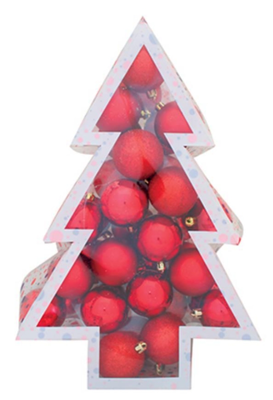 Súprava ozdôb na stromček slúži na slávnostné ozdobenie vianočného stromčeka. Pozostáva z 34 ks gulí s priemerom 6 cm. Farba gulí je červená.