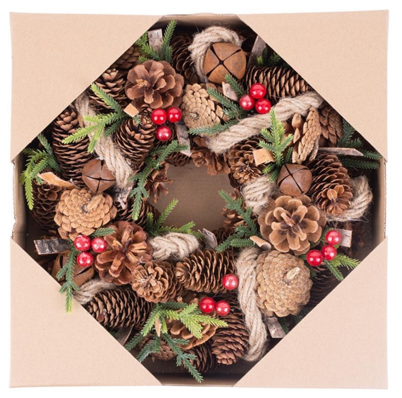 Veniec MagicHome by nemal chýbať vo výbave vášho interiéru počas vianočných sviatkov. Je to vkusný veniec so šiškami. Jeho rozmer je 30x8 cm.