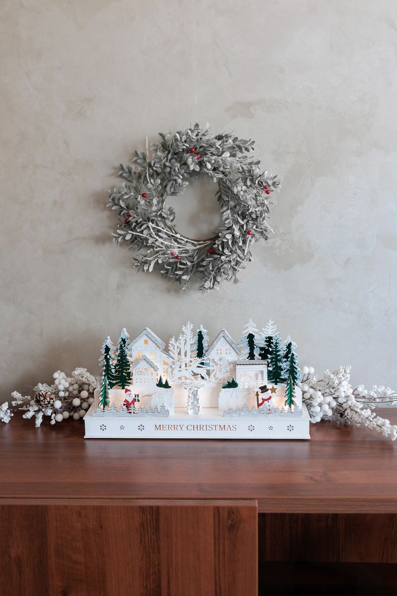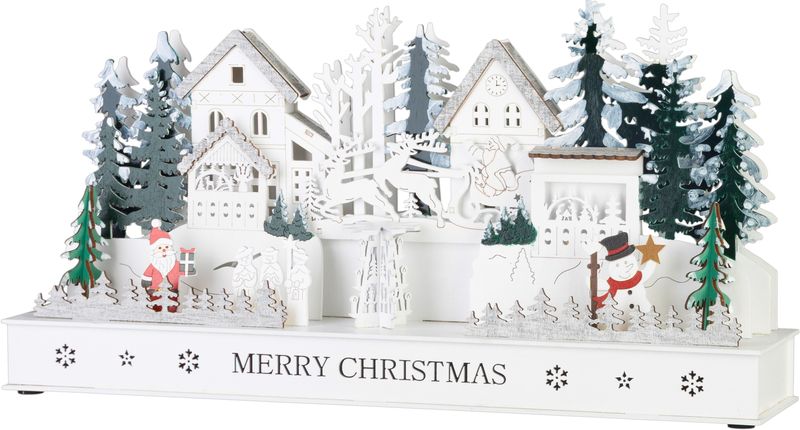 Vytvorte si doma čarovnú atmosféru Vianoc s nádhernou drevenou dedinkou MagicHome. Detailne spracované domčeky, stromčeky a zimné postavičky sú doplnené o 15 LED svetiel v teplej bielej farbe, ktoré navodia príjemné sviatočné osvetlenie.