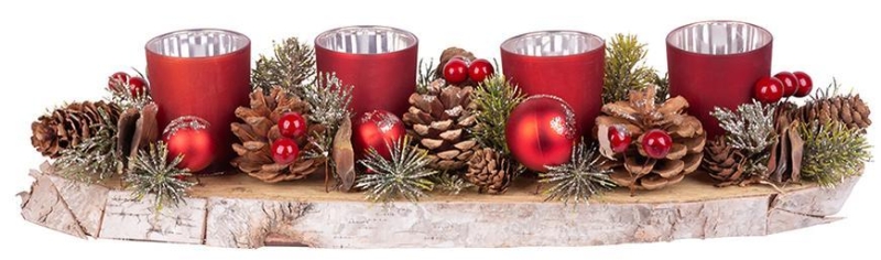 Ikebana MagicHome Vianoce, na dreve, červená, adventná, 45x13x09 cm