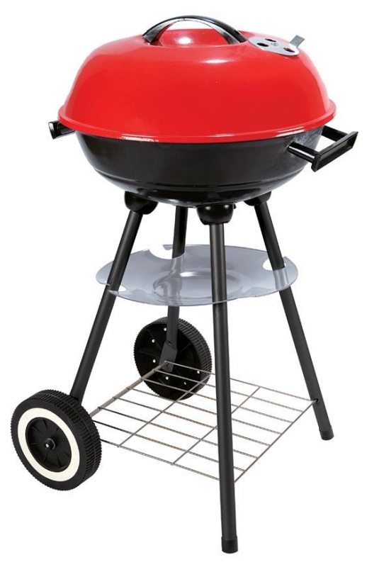 Kruhový gril je vyrobený z kvalitného oceľového plechu, s povrchovou úpravou kvalitnej čiernej a červenej žiaruvzdornej farby. Rošt na grilovanie má priemer 32,5 cm. Pod ním sa nachádza spodná misa s priemerom 44 cm a slúži pre umiestnenie dreveného uhlia alebo brikiet. Pod misou je plechový popolník, ktorý slúži pre zachytávanie unikajúceho popolu. Počas grilovania je možné použiť vrchný kryt, na ktorom sa nachádza plechový otvor na prietok vzduchu, ktorý sa nastavuje manuálne, podľa potreby. Počas grilovania je táto časť horúca, zvýšte preto pozornosť a chráňte sa pred popálením použitím rukavice. Hmotnosť grilu je 5,5 kg a je tiež vybavený dvomi kolieskami v spodnej časti, čím je ľahký na premiestnenie. Výška roštu od zeme je 56,5 cm a celková výška grilu je 68 cm. Gril je potrebné umiestniť vo vonkajších priestoroch v bezpečnej vzdialenosti od detí a zvierat.