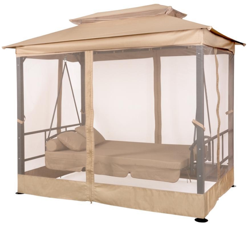 Robustná hojdačka je ideálnym záhradným doplnkom pre posedenie troch až štyroch ľudí. Samotná hojdačka je súčasťou vonkajšej, štvorhrannej priestorovej konštrukcie. Celá konštrukcia je vyrobená z kovu, čím poskytuje dostatočnú stabilitu a pevnosť. Vrchná časť strechy aj prekrytá látkou vyrobenou z polyesterových vláken, čím vytvráva odolnú ochranu voči pálaciemu slnku, rovnako ako dažďovej vode. Strecha je svetlo-hnedej farby a má prievzdušný otvor. Výhodou tejto hojdačky sú závesy, ktoré si viete jednoducho zatiahnuť a zaviaziať, čím si vytvoríte malý súkromný priestor, ale taktiež ochranu pred slnkom. Celá hojdačka má krásny príjemný povrch a súčasťou sú 4 pribalené vankúše pre vytvorenie pohodlia.