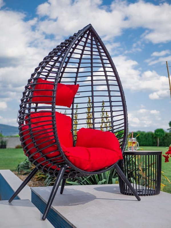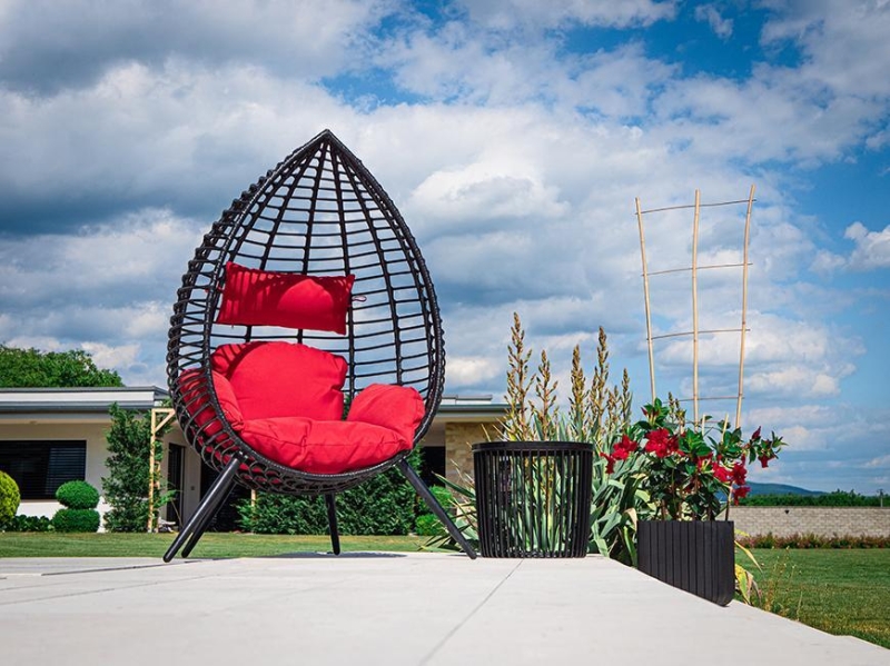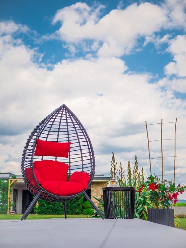 Kreslo Canoona je dizajnové, nadčasové kreslo vyrobené z polyratanu. Konštrukcia kresla je čiernej farby, ktorú dopĺňa sedák červenej farby. Je ideálne na príjemnú relaxáciu, hodí sa aj do interiéru aj exteriéru. Výška kresla je 1,44 m a maximálna nosnosť 120 kg.