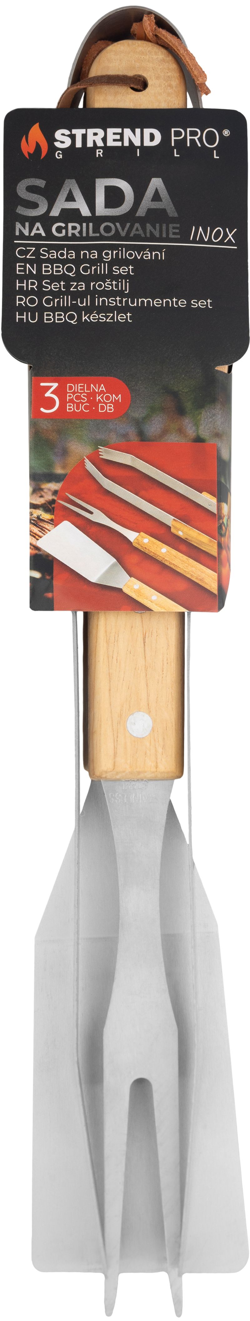 Sada náradia Strend Pro Grill, na grilovanie a opekanie, s drevenou rúčkou, 3-dielna