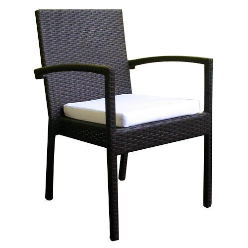 Stolička na vonkajšie sedenie je štýlovým a funkčným doplnkom. Povrch je pokrytý hnedým, polypropylénovým materiálom, ktorý sa svojim vzhľadom podobá na ratan. Je veľmi odolný voči poškodeniu pred vonkajšími vplyvmi ako navlhnutím alebo poškodením od slnka. Rozmery stoličky sú 55 x 60 x 87 cm a jej nosnosť je až 120 kg. Súčasťou balenia je polyesterový podsedák pre pohodlnejšie sedenie.