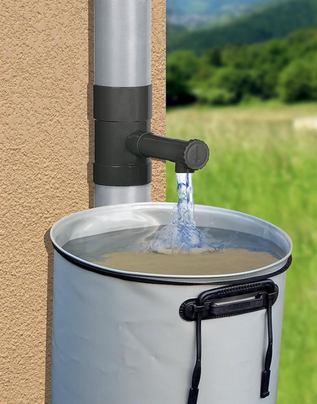 Zberač Strend Pro umožňuje zber dažďovej vody do vonkajšej nádrže/barelu. Pevný a odolný materiál zaisťuje dlhé roky