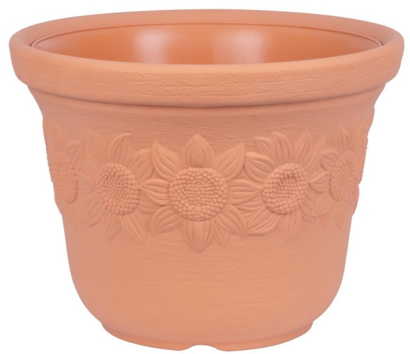 Klasický kvetináč Sunny s dekorom slnečníc v terakota farbe skrášli Váš dom. Rozmery: 57x43,5 cm.