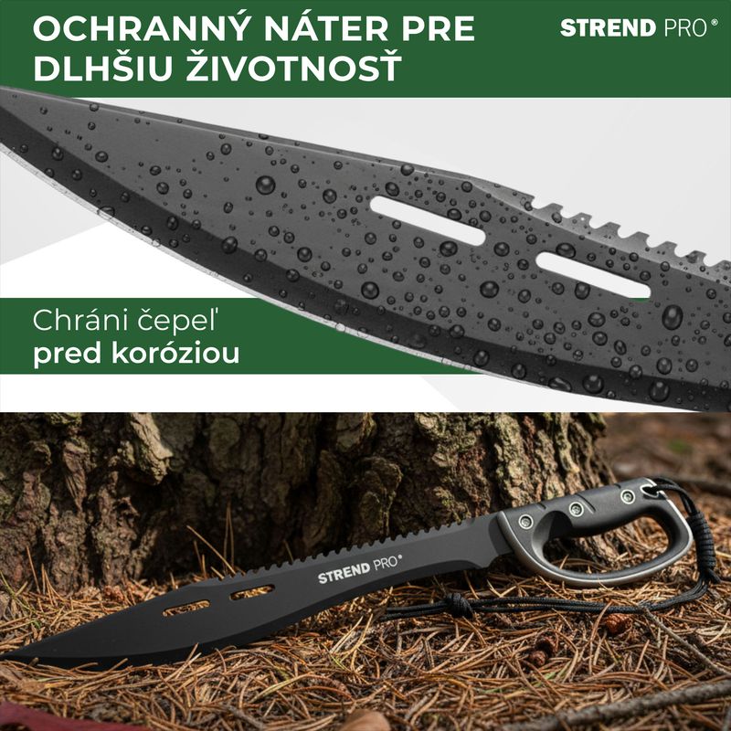 Mačeta Strend Pro Tactical, s puzdrom, s pílkou, s ochranou ruky, čierna, 61 cm