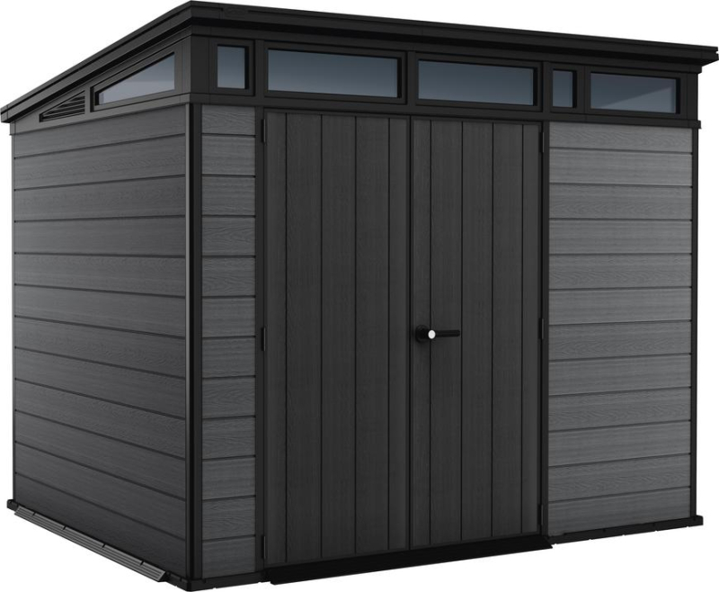 Záhradný domček Keter CORTINA 9x7 v sivom prevedení je moderné a praktické riešenie na uskladnenie záhradného náradia, vybavenia, kosačky, bicyklov či ďalších potrieb, ktoré chcete mať bezpečne uložené a chránené pred nepriaznivým počasím. Vďaka elegantnému dizajnu s imitáciou dreva pôsobí štýlovo a prirodzene zapadne do každej záhrady.