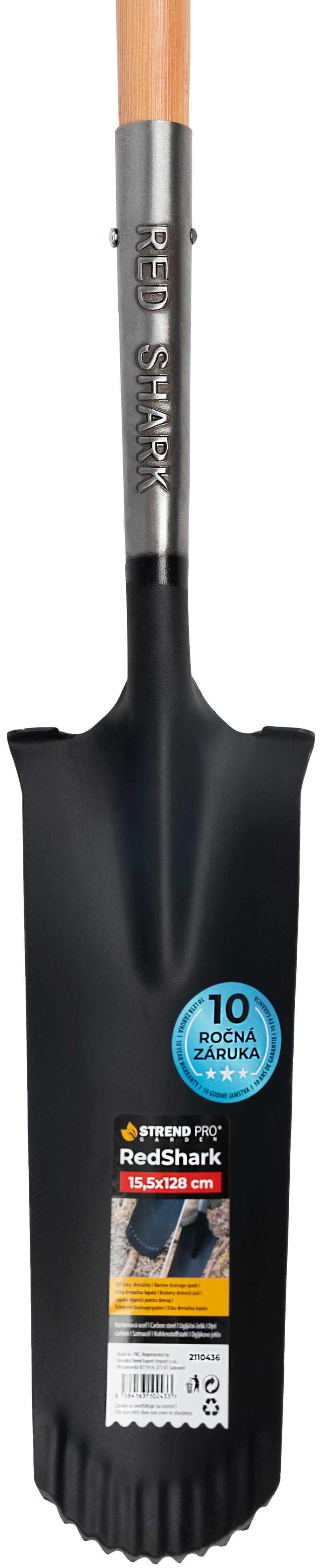 Rýľ Strend Pro Premium RedShark v drenážnom prevedení s ručne ostrenými zubami na konci čepele je určený na presné a hĺbkové výkopové práce v úzkych priestoroch. Jeho úzka čepeľ je ideálna na kopanie rýh pre drenážne systémy, káble, trubky či výsadbu sadeníc. Predĺžená drevená násada typu D s dĺžkou 1280 mm zabezpečuje pohodlné ovládanie, stabilitu a výborný dosah.
