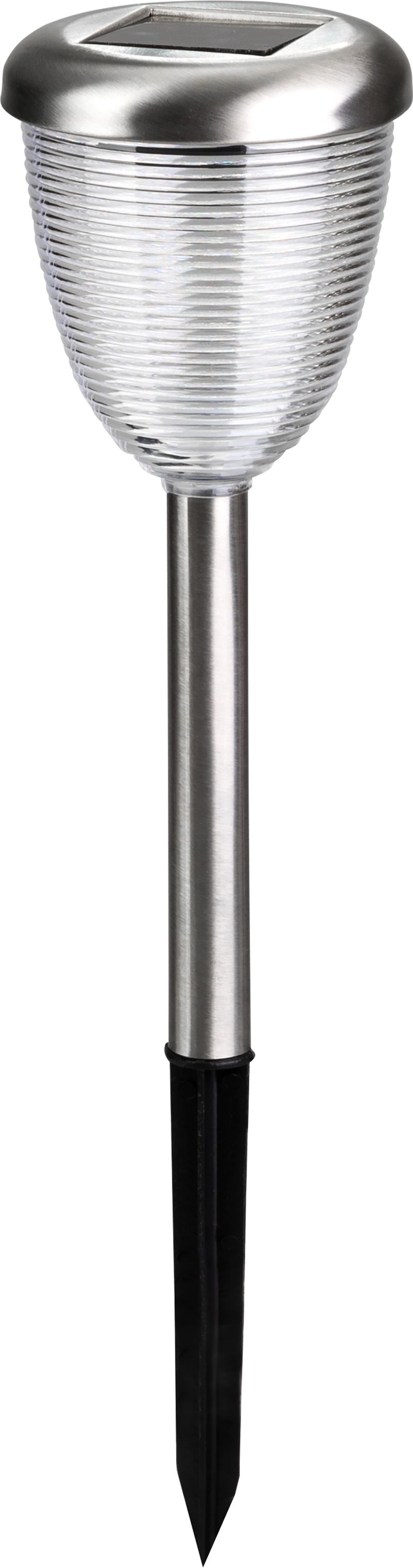Solárne svietidlo urcené na použitie v exteriéri vyrobené z nehrdzavejúcej ocele a plastu.