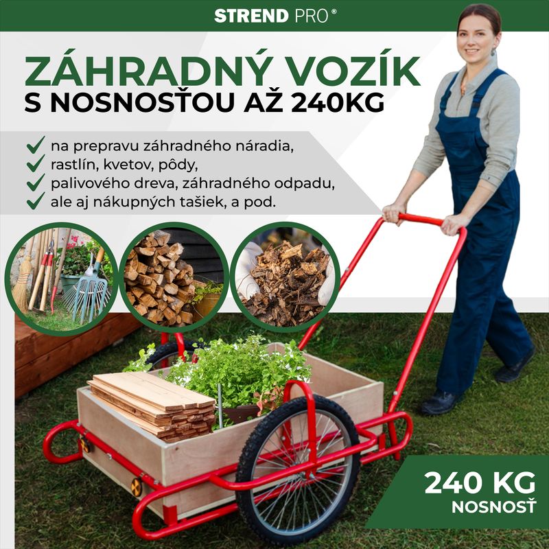 Vozík Optimus, prepravný, s drevenou korbou, max. 240 kg