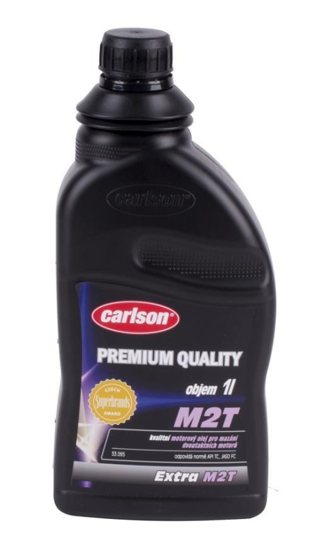 Motorový olej CARLSON® EXTRA M2T SAE 40 je určený na mazanie moderných, vysokootáčkových dvojtaktných benzínových motorov, vrátane športových verzií a taktiež motocyklov, snežných skútrov, kosačiek na trávu a pod. Olej obsahuje zmes vysoko rafinovaných ropných frakcií (základového oleja) zušlachtujúcich prísad. Kvalitný motorový olej zodpovedá špecifikácii SAE 40 a normám API TC, JASO FC.
